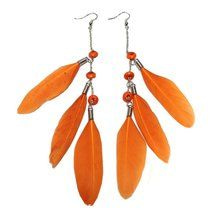 S_600757B - EARRINGS 3 FEATHERS with beads ORANGE (1st)