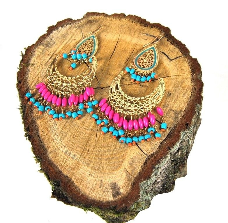 S_600212Q - HANDMADE IBIZA ORIGINALS EARRINGS PINK / GREEN (1st)