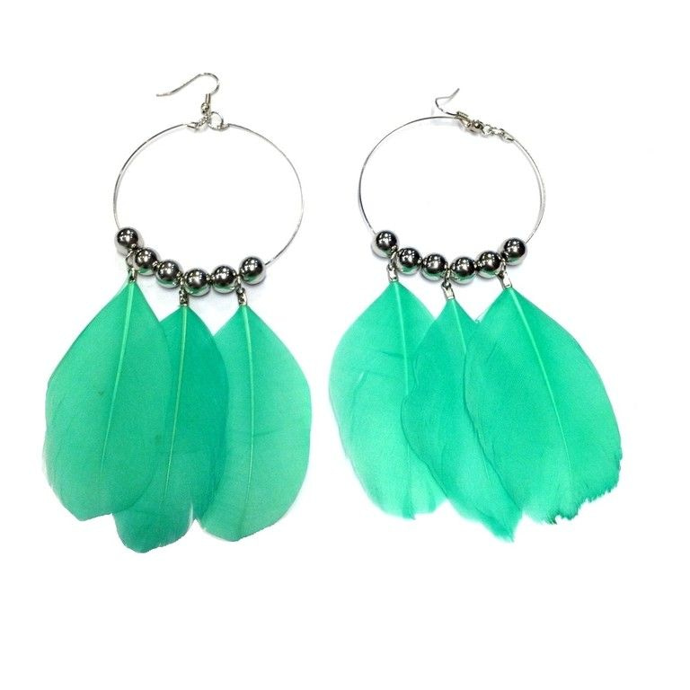 S_600759C - EARRINGS RING WITH FEATHERS AND BULLETS AND GREEN (1st)
