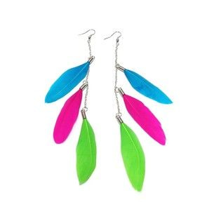 S_600750E - EARRINGS WITH 3 feathers BLUE-PINK-GREEN (1st)