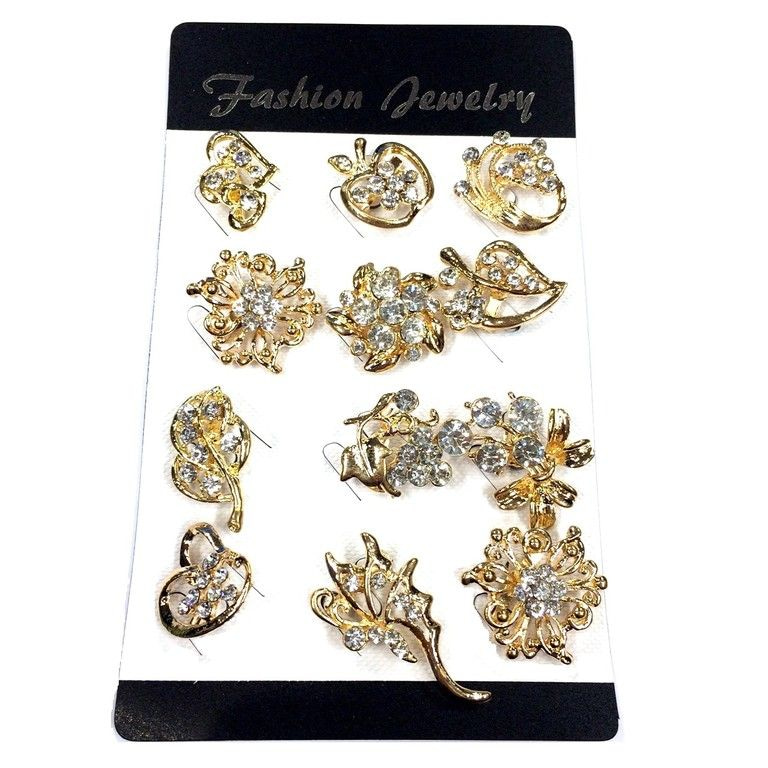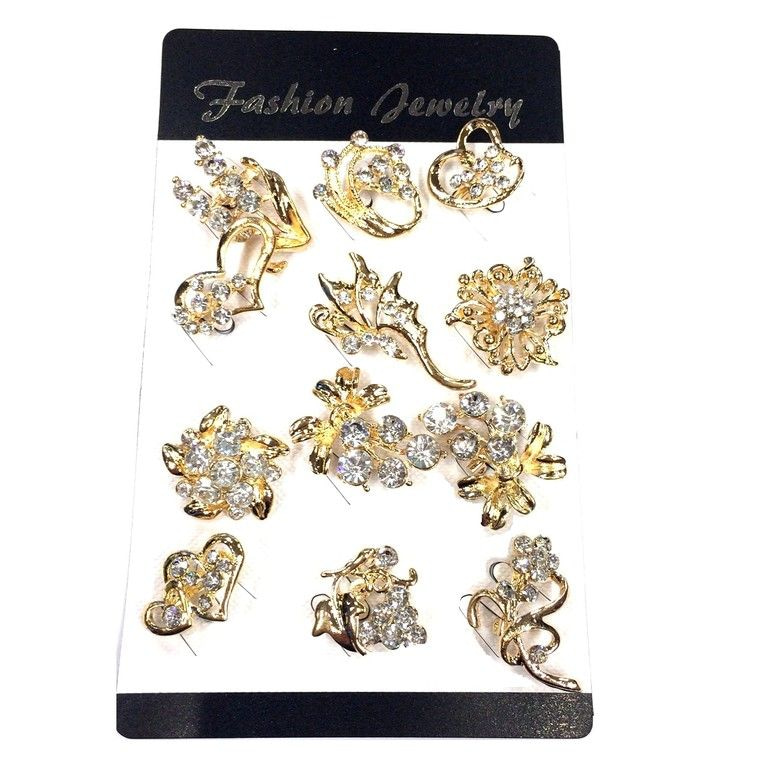 S_75325 - BROOCH GOLD WITH RHINESTONE MIX (12pcs)