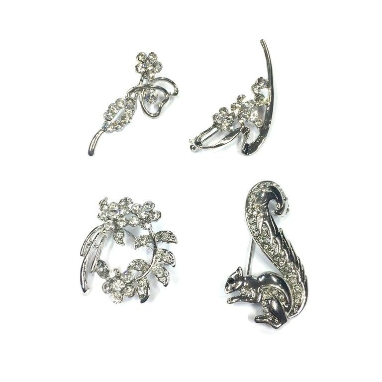 S_75310 - BROOCH SILVER RHINESTONE MIX VIS (12pcs)