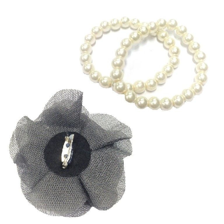 S_89508C - BRACELET PEARL / BROOCH FLOWER - GREY (1st)