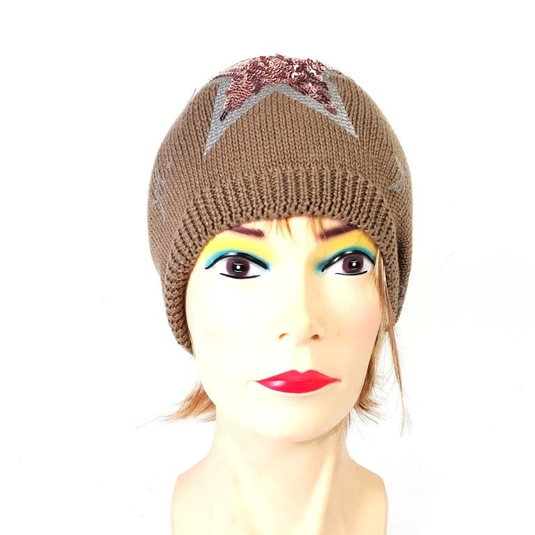 S_60054E - BEAUTIFUL HAT WITH STARS - LIGHT TAUPE (1st)