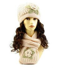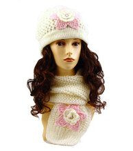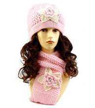 S_790366D - HAT AND SCARF WITH CREAM PINK FLOWER (1st)