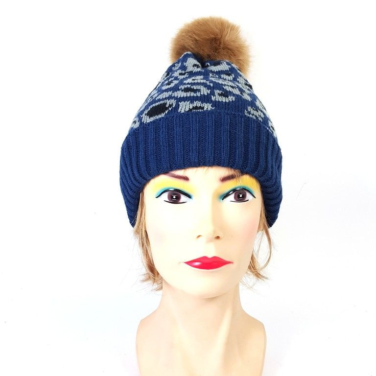 S_61220B - BEAUTIFUL HAT WITH TIGER PRINT & PLUME - DARK BLUE (1st)