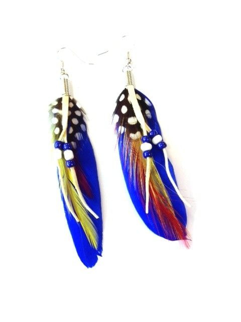 S_600034A - IBIZA LOOK EARRINGS WITH BLUE FEATHER (1st)