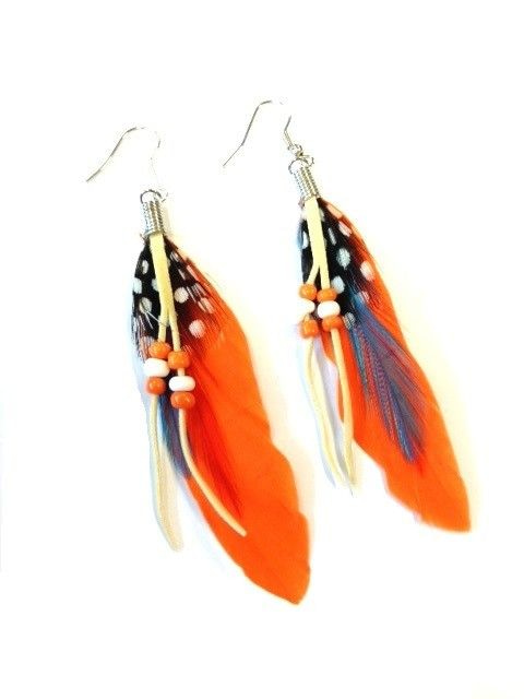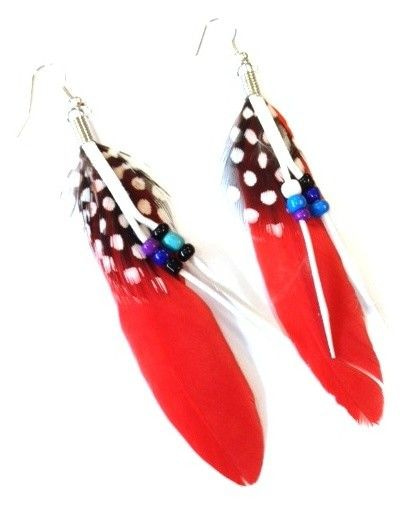 S_600033A - IBIZA LOOK EARRINGS WITH RED FEATHER (1st)