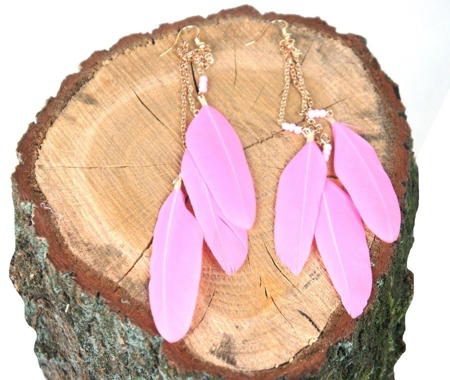 S_5784307 - IBIZA LOOK EARRINGS WITH PINK FEATHERS (1st)