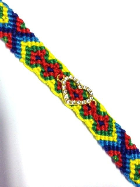 S_600041F - IBIZA LOOK BRAIDED BRACELET WITH MULTICOLOR RHINESTONE HEART (1st)