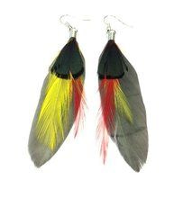S_600037M - IBIZA WITH FEATHER EARRINGS LOOK GREY / RED / YELLOW (1st)