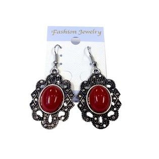 S_600804B - MODERN EARRINGS ROUND / RED FLOWER (1st)