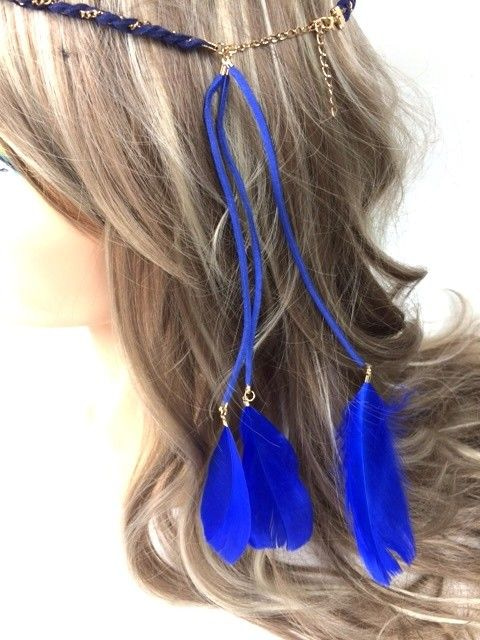 S_600029D - IBIZA LOOK BLUE BRAIDED HAIR BAND WITH PEACOCK FEATHERS (1st)