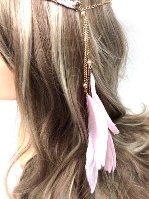 S_600026A - IBIZA LOOK BRAIDED HAIR BAND WITH PINK FEATHERS (1st)