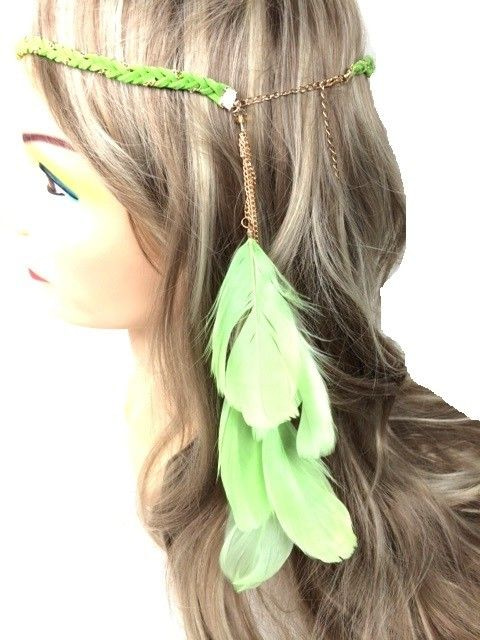 S_600027C - IBIZA LOOK BRAIDED HAIR BAND WITH FEATHERS GREEN (1st)