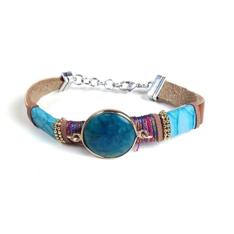 S_9527400 - LEATHER BRACELET WITH TURQUOISE STONE (1st)