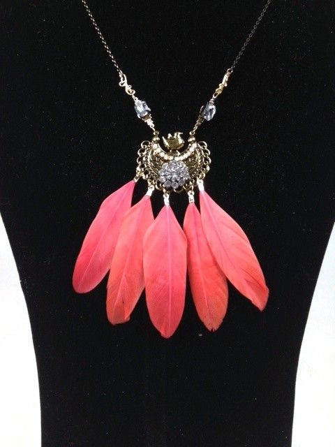 S_600158E - NECKLACE / HAIR BAND SMALL ORANGE FEATHERS (1st)