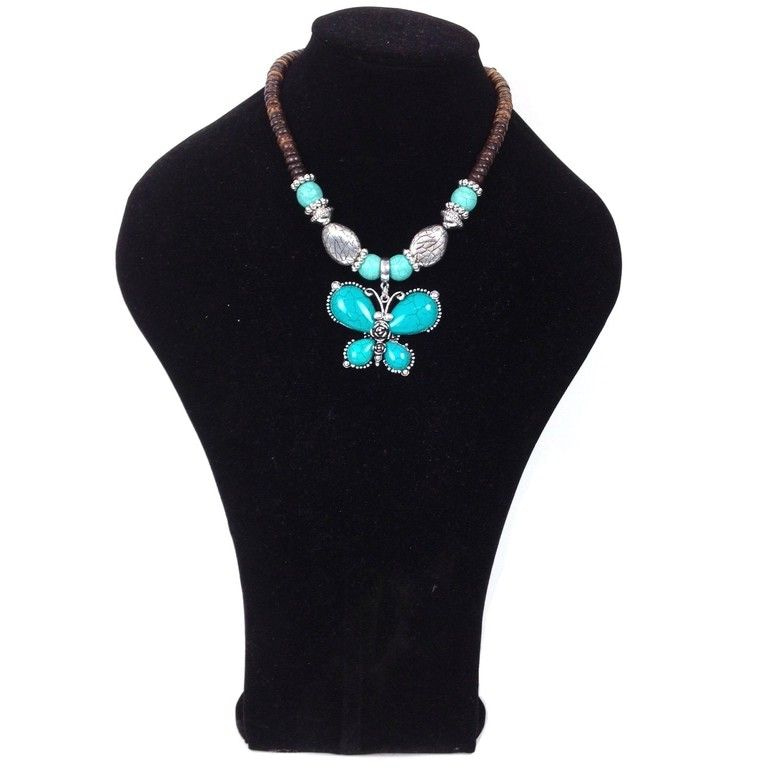 S_600431 - BUTTERFLY NECKLACE WITH TURQUOISE FLOWERS (1st)