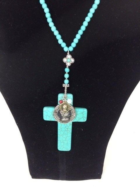 S_2891211 - IBIZA LOOK TURQUOISE NECKLACE CROSS (1st)