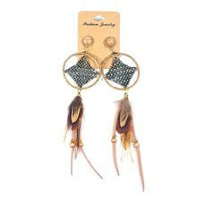 S_619118C - EARRINGS BEIGE / GOLD feathers (1st)
