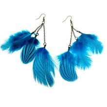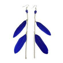 S_600747D - EARRINGS 2 FEATHERS WITH DIAMOND BEAD BLUE (1st)