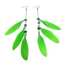 S_600757J - EARRINGS 3 FEATHERS with beads NEON GREEN (1st)