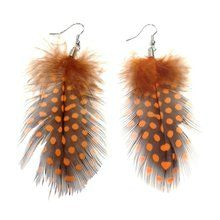 S_600784A - EARRINGS FEATHERS WITH ORANGE DOTS (1st)