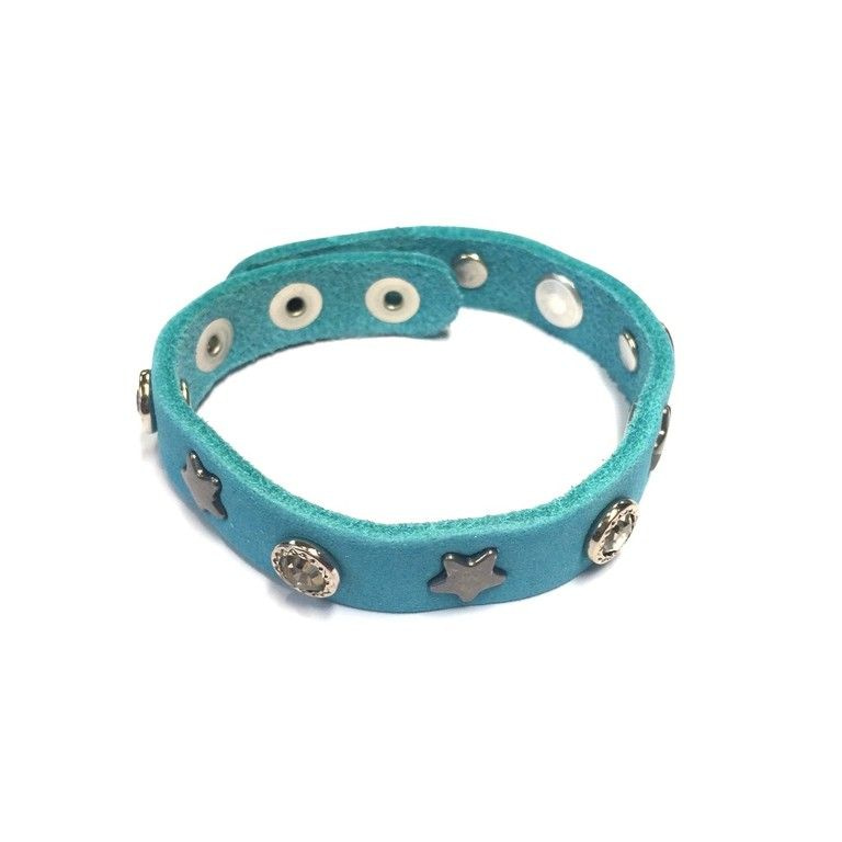 S_600482 - LEATHER BRACELET WITH RHINESTONE / STUDS STARS AQUA BLUE (1st)