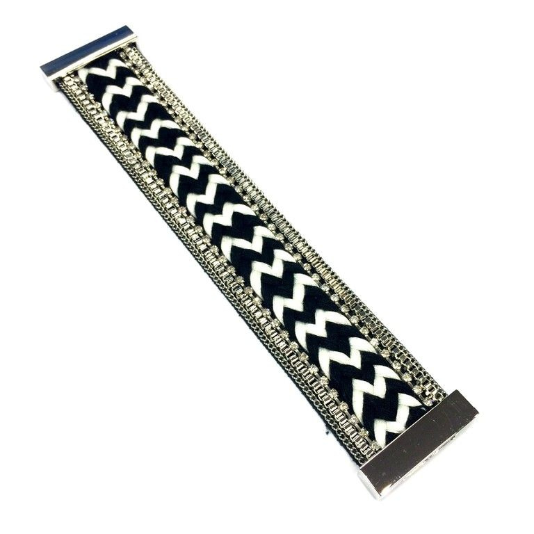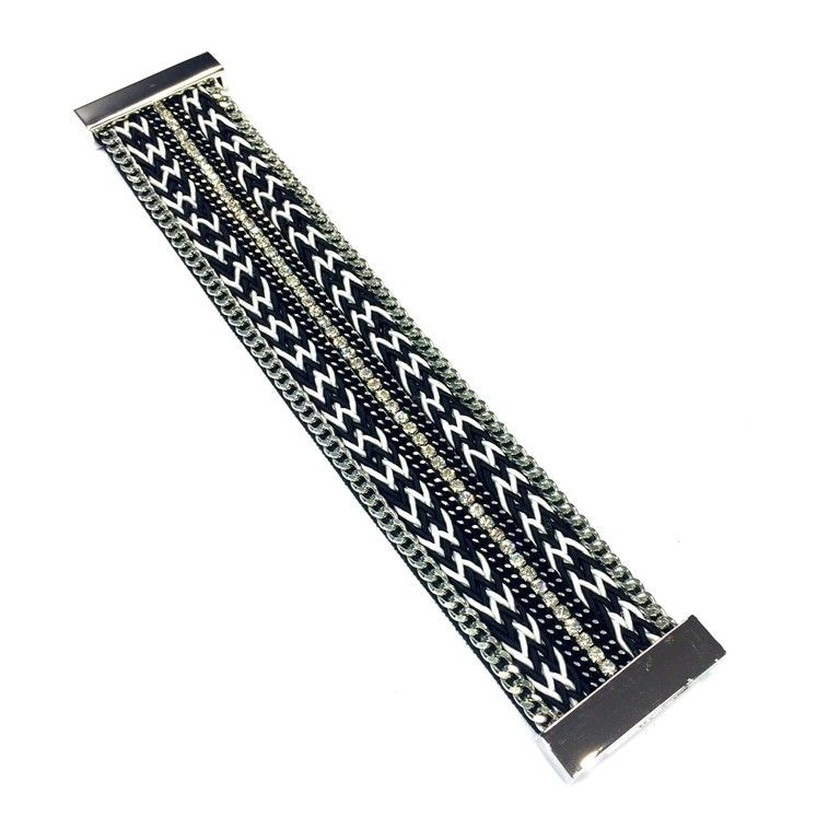 S_600800E - BRACELET SILVER MAGNET CLOSURE - AZTEK BLACK / WHITE (1st)