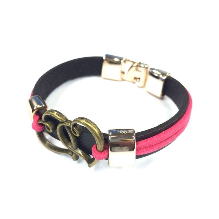 S_811347C - LEATHER BRACELET PINK HEART (3pc)