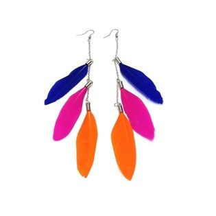 S_600750D - EARRINGS WITH 3 feathers BLUE-ORANGE-PINK (1st)