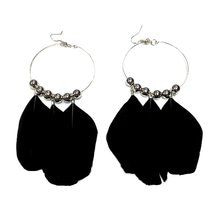 S_600759F - EARRINGS RING WITH BLACK FEATHERS AND SCOOPS (1st)
