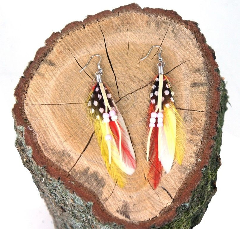S_5782005 - IBIZA LOOK FEATHER EARRINGS YELLOW RED (1st)