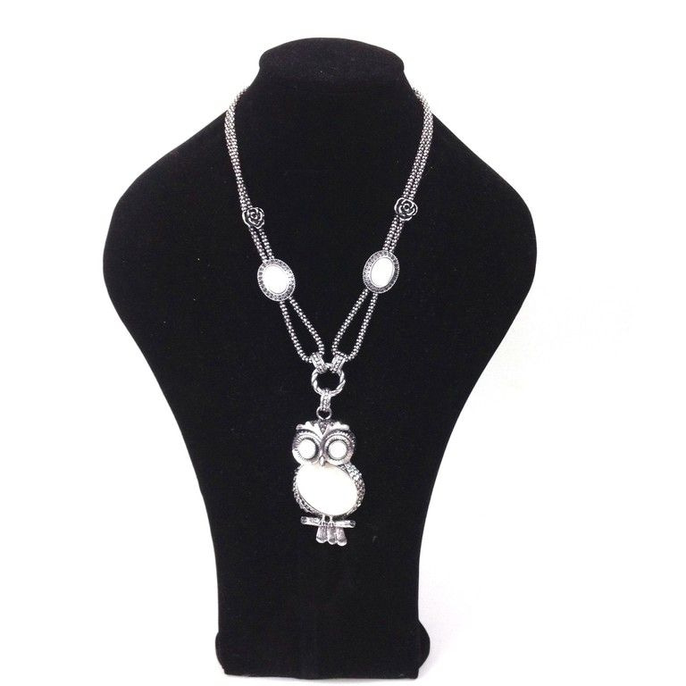 S_600434A - OWL NECKLACE WITH WHITE FLOWERS (1st)