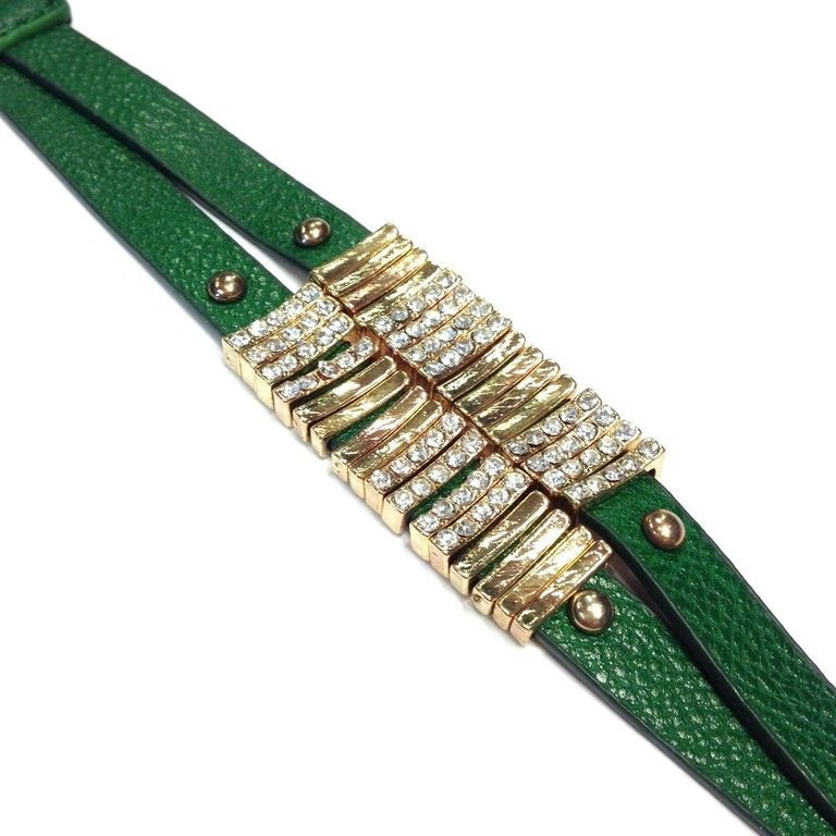 S_811324E - LEATHER BRACELET WITH RHINESTONE GREEN (1st)