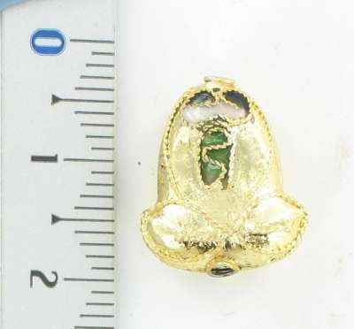 S_32803a - Art.nr: 32803a - CLOISONNE BEADS GOLD / GREEN FROG (6 pcs.)