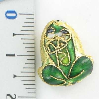 S_32803b - Art.nr: 32803b - CLOISONNE BEADS GREEN / GOLD FROG (6 pcs.)