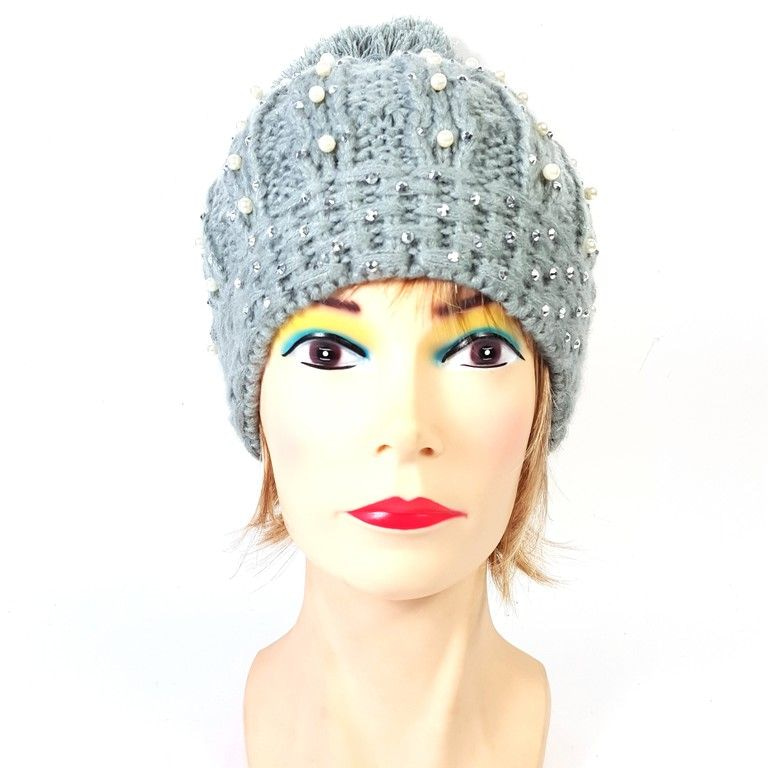 S_683603D - LUXURY HAT WITH PEARLS and rhinestones - GREY (1st)