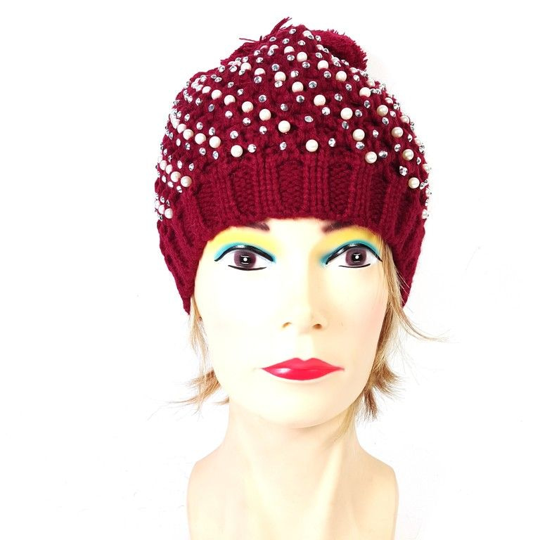 S_683602A - LUXURY HAT WITH PEARLS and rhinestones - BORDEAUX RED (1st)