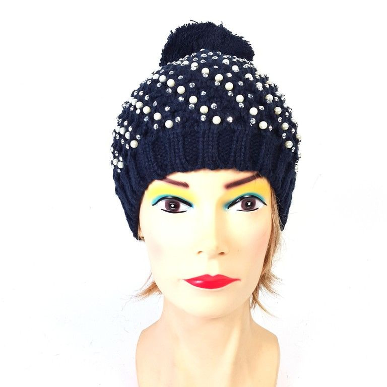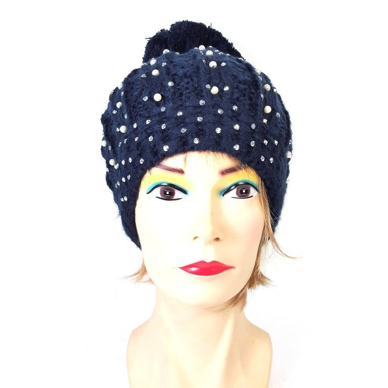 S_683602C - LUXURY HAT WITH PEARLS and rhinestones - DARK BLUE (1st)