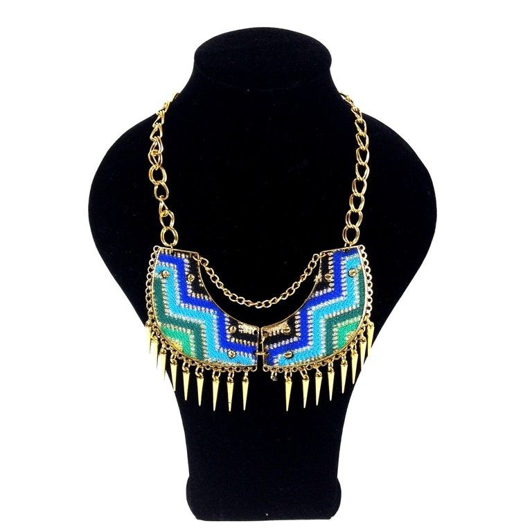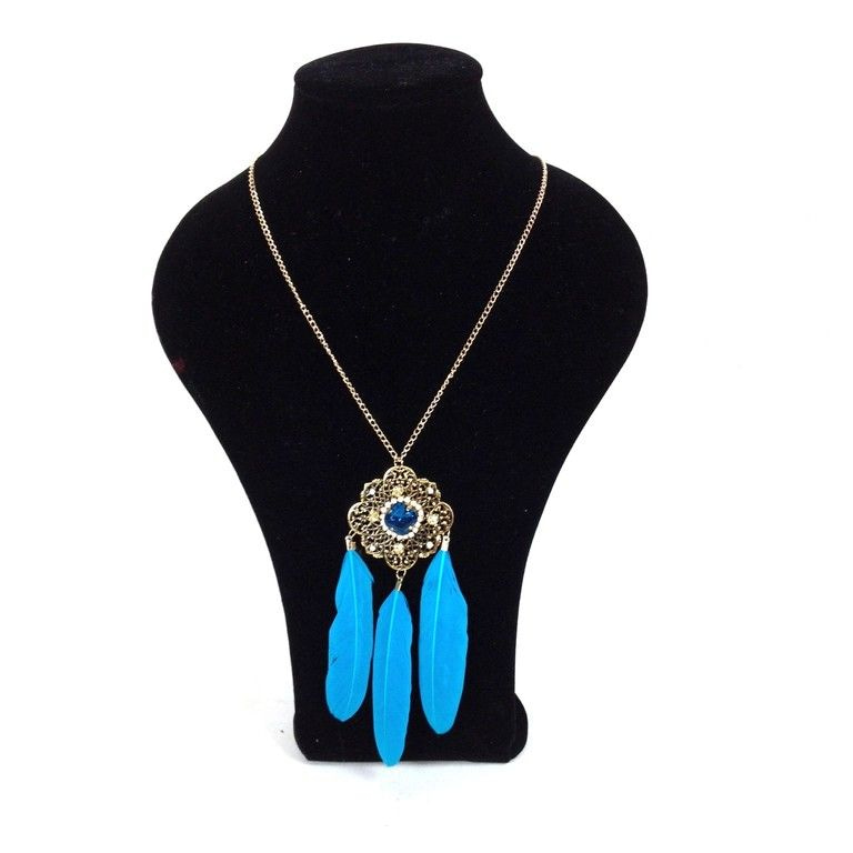 S_600159B - NECKLACE WITH TURQUOISE RHINESTONE-STONE AND FEATHER LIGHT (1st)