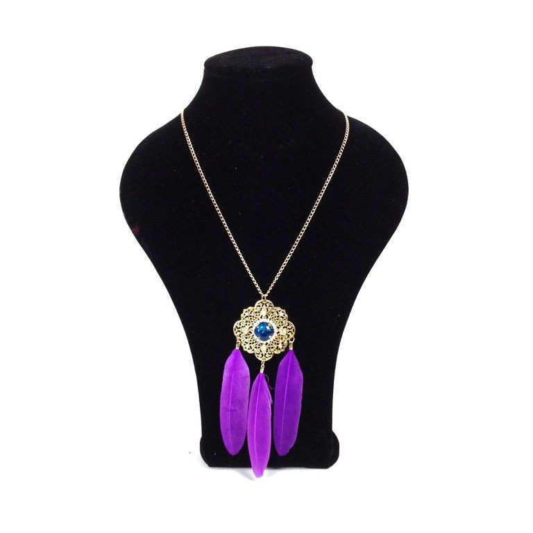 S_600159F - NECKLACE WITH TURQUOISE STONE AND FEATHER RHINESTONE-PURPLE (1st)