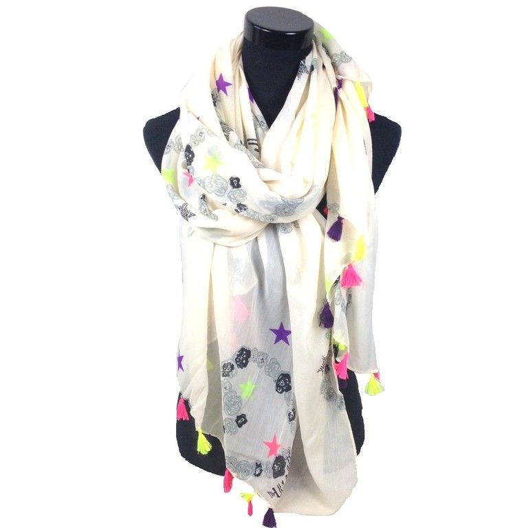 S_2380000 - BEAUTIFUL STAR SCARF / HEART & tassels CREAM (1st)