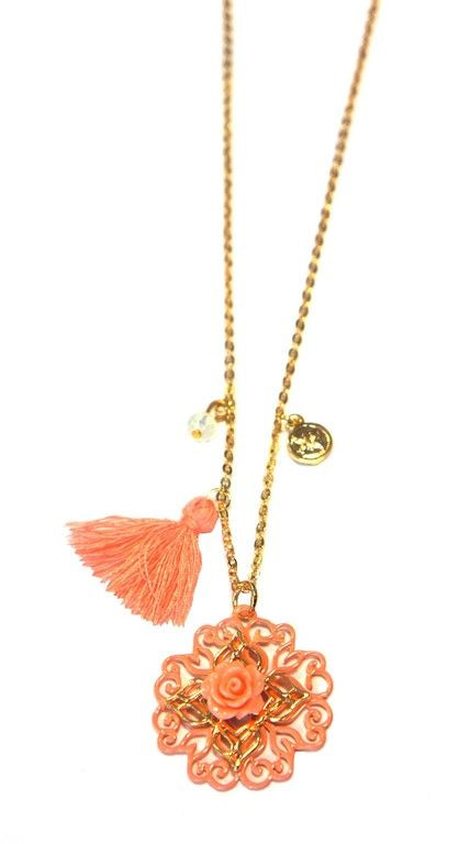 S_3041304 - IBIZA LOOK FLOWER NECKLACE SALMON (1st)