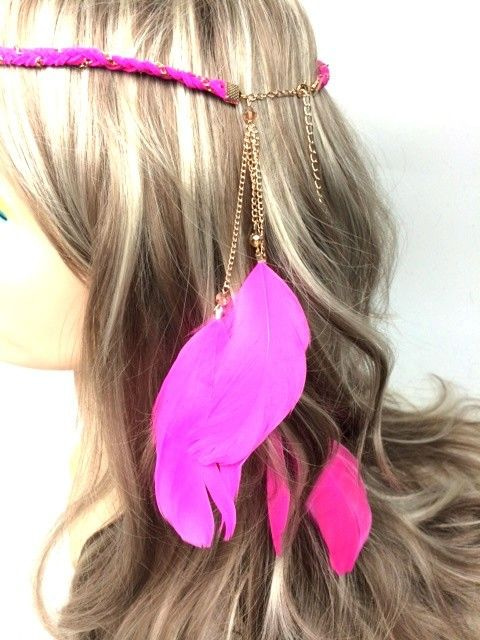 S_600026C - IBIZA LOOK BRAIDED HAIR BAND WITH FEATHERS FUCHSIA (1st)