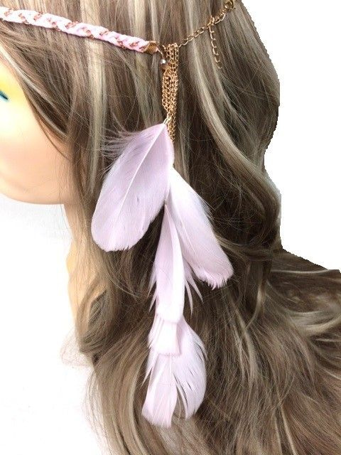 S_600027E - IBIZA LOOK BRAIDED HAIR BAND WITH PINK FEATHERS (1st)