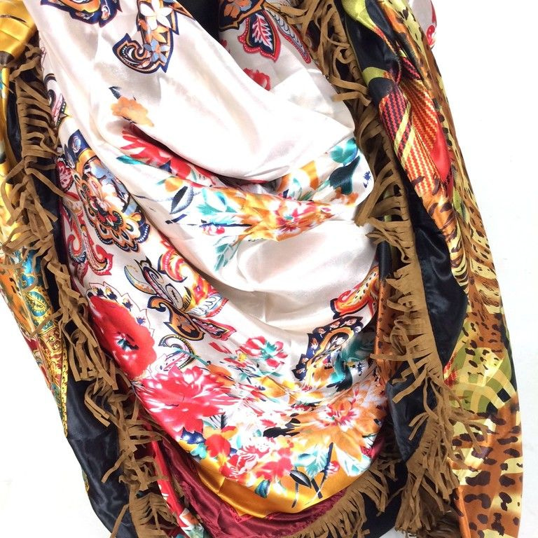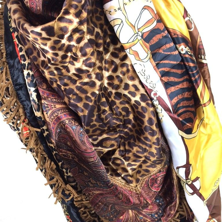 S_2149007AS - LUXURY 2-SIDED TRIANGLE SCARF BROWN / PANTHER FRILLS (1st)