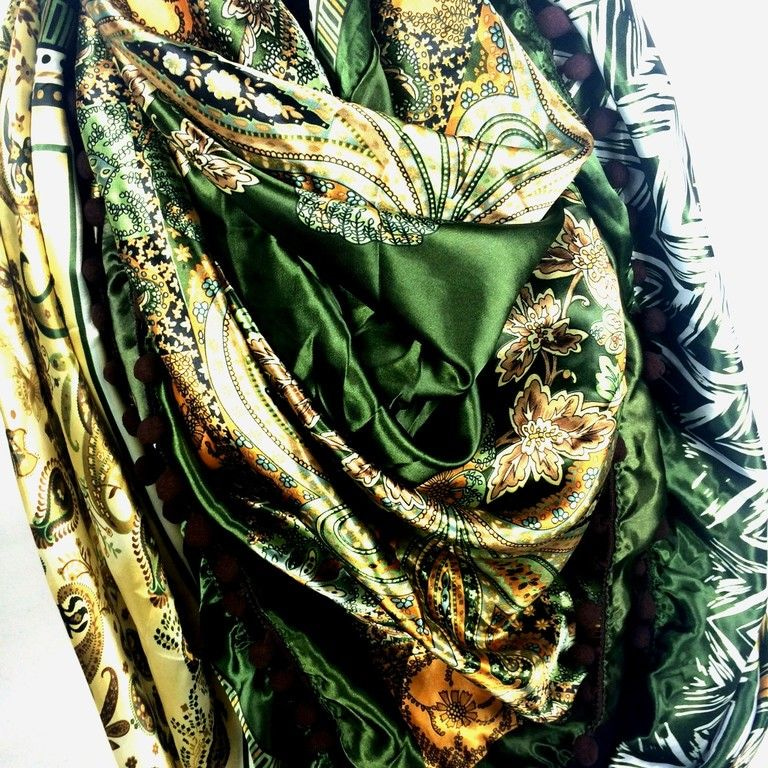 S_2149007CO - DELUXE 2-SIDED TRIANGLE SCARF GREEN - BROWN SCOOPS (1st)