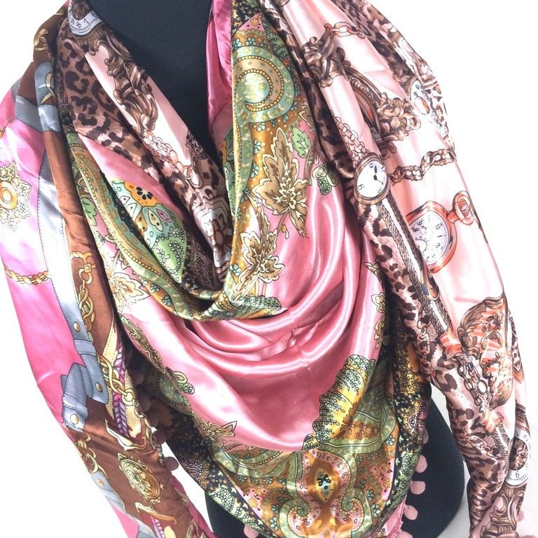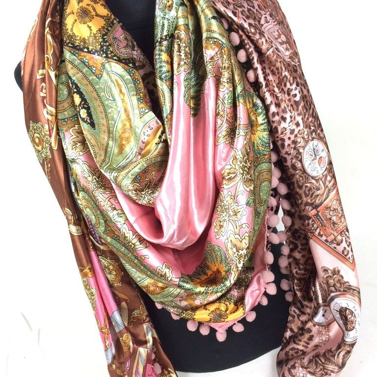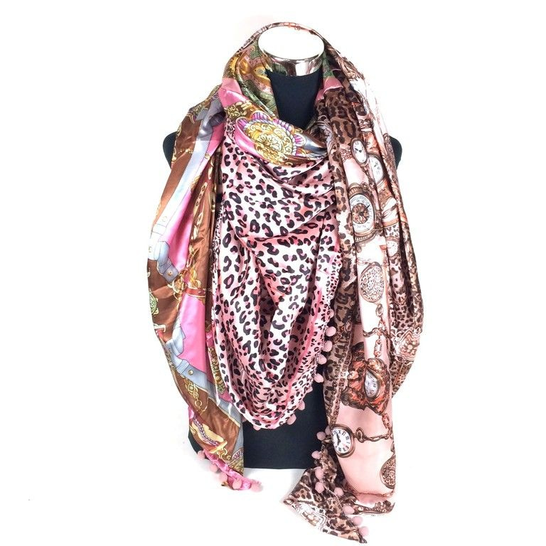 S_2149007L - LUXE TRIANGLE SCARF 2-SIDED PINK / BROWN / TIGER (1st)