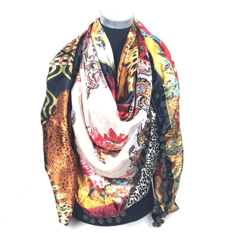 S_2149007M - LUXE TRIANGLE SCARF 2-SIDED PINK / CREAM / TIGER / FLOWER (1st)
